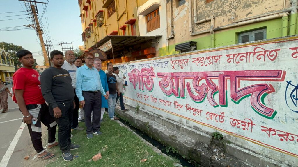 দুর্গাপুর,১০ মার্চ : বেশ কয়েকদিনের প্রত্যাশা মতই বর্ধমানতৃণমূল কংগ্রেসের প্রার্থী হিসেবে আজ ব্রিগেডের জনজোয়ারে দুর্গাপুর লোকসভা কেন্দ্রের তৃণমূল কংগ্রেসের সেনাপতি অভিষেক বন্দ্যোপাধ্যায় প্রাক্তন ভারতীয় ক্রিকেটার কীর্তি আজাদের নাম ঘোষণা করেন। দুর্গাপুর মহকুমা তৃণমূল কংগ্রেসের সমস্ত নেতাকর্মীরা ব্রিগেডে উপস্থিত থাকার কারণে দেওয়াল লিখনে সামান্য বিলম্ব হয়ে যায়। কলকাতা থেকে ফিরেই দুর্গাপুরের ১৫ নম্বর ওয়ার্ডে শুরু হয়ে গেছে দেওয়াল লিখন। দুর্গাপুর নগর নিগমের ১৫ নম্বর ওয়ার্ডেই সর্বপ্রথম এই দেওয়াল লিখন শুরু হল তৃণমূল কংগ্রেসের প্রার্থীর নাম লিখে। এরপরে ১৬ নম্বর ওয়ার্ড, ১৯ নম্বর ওয়ার্ড, ১১ নম্বর ওয়ার্ড, ১২ নম্বর ওয়ার্ডসহ আরও বহু এলাকাতে শুরু হয়ে যায় দেওয়াল লিখন।