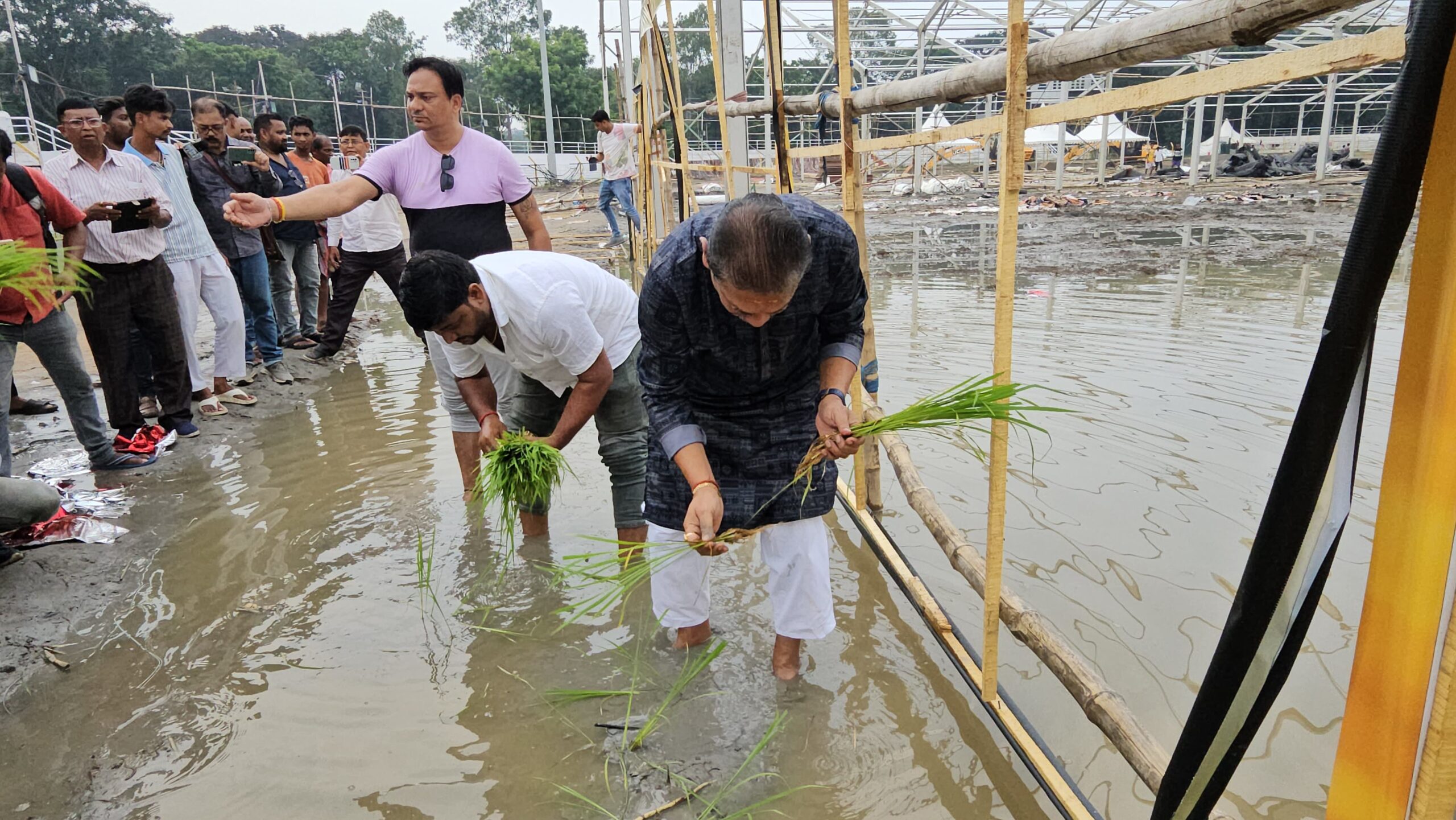 দুর্গাপুর, ১৯ জানুয়ারি : একটানা বৃষ্টির কারণে জলে ভেজা দুর্গাপুর স্টিল টাউনশিপ এর দুর্গাপুর ইস্পাত কারখানার নিজস্ব নেহেরু স্টেডিয়ামকে নরেন্দ্র মোদির জনসভার জন্য উপযুক্ত করে